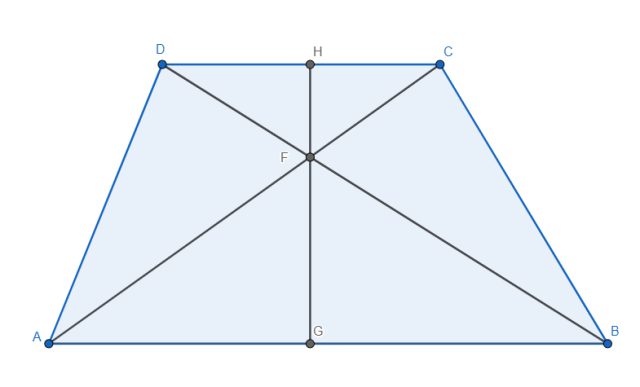 Ponieważ trapez ABCD jest równoramienny to pola trójkątów ADF i BCF są sobie równe: