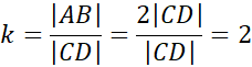Trójkąty ABF i CDF są do siebie podobne w skali k: