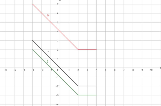 Wykres funkcji g – przenosimy pierwotny o 1 w dół. Wykres funkcji h – podnosimy pierwotny o 4 do góry.
