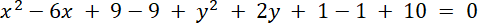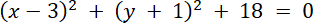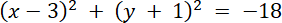 Przekształć równanie okręgu aby odczytać współrzędne środka i promień. Zauważ, że po prawej stronie równania jest ujemna liczba. Aby równanie było równaniem okręgu, po prawej stronie równania musi być liczba dodatnia.