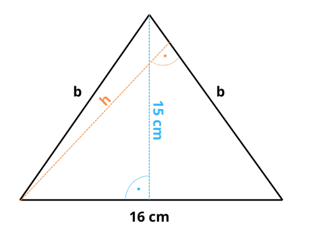 W tym zadaniu musisz wysokość poprowadzoną na ramię trójkąta równoramiennego, wiedząc, że długość podstawy wynosi