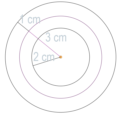 Narysuj środki wszystkich okręgów o promieniu 1 cm stycznych do okręgu o promieniu 3 cm.