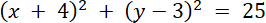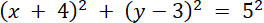 Wyznaczam środek okręgu oraz jego promień: