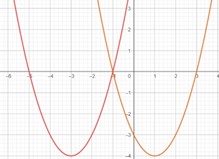 Rozpisujemy obie funkcje w celu znalezienia współrzędnych wierzchołka, korzystamy ze wzoru ogólnego funkcji kwadratowej