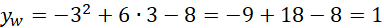 , która określa miejsca zerowe oraz obliczonych wierzchołkach.