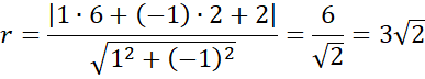 , aby wyznaczyć długość promienia, czyli odległość wyznaczonej prostej od punktu C i zapisz równanie szukanego okręgu.