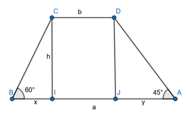 Wyznacz pole trapezu, w którym katy przy podstawie mają miary i , a różnica kwadratów długości podstaw jest równa 30.