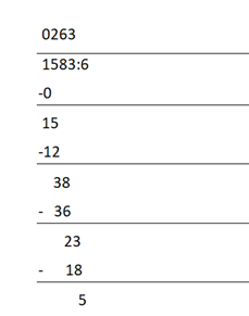 Wynik dzielenia pisemnego zapisujemy nad kreską. Liczba, którą otrzymujemy na dole słupka to reszta.