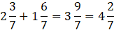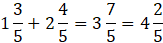 Aby obliczyć sumę dwóch liczb mieszanych, których ułamki mają ten sam mianownik, dodaj ich części całkowite i dodaj licznik ułamków, a mianownik zostaw ten sam. Pamiętaj o wyłączaniu całości i zamienianiu ułamków na nieskracalne.