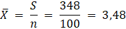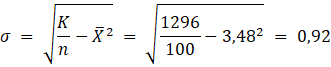 W celu wyznaczenia odchylenia standardowego n dany wyznaczono ich sumę S i sumę kwadratów. Wyznacz odchylenie. n = 100 S = 348 K = 1296