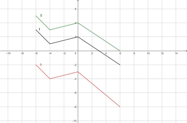 Wykres funkcji g – przenosimy pierwotny o 2 do góry. Wykres funkcji h – obniżamy pierwotny o 5 do dołu.