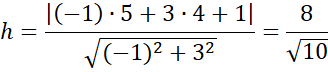 Następnie wyznacz równanie prostej przechodzącej przez punkty A oraz B i przedstaw ją w postaci ogólnej. Następnie ze wzoru na odległość punktu od prostej wyznacz długość wysokości równoległoboku i ze wzoru na długość odcinka oblicz długość podstawy AB. Na koniec oblicz pole równoległoboku ABCD.