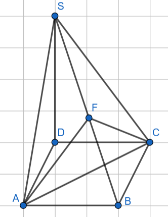 Wyznacz sinus kąta między ścianami bocznymi ABS i CBS tego ostrosłupa, jeśli podstawą ostrosłupa ABCDS jest kwadrat ABCD. Krawędź boczna SD jest wysokością ostrosłupa, a jej długość jest dwa razy większa od długości krawędzi podstawy.