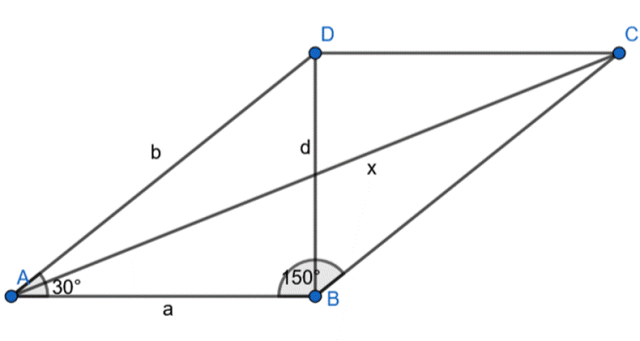 Oblicz długość przekątnej AC, jeśli w równoległoboku ABCD krótsza przekątna BD ma długość i jest prostopadła do obków AD i BC, a kąt ostry ma miarę .