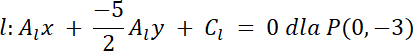 prosta k:–2x + 5y + 1 = 0, więc Ak = –2, Bk = 5