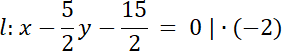 l:–2x + 5y + 15 = 0