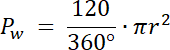 Po–pole odcinka koła (oznaczone kolorem niebieskim), Pt–pole trójkąta, Pw–pole wycinka, r–promień koła, α–kąt wycinka koła