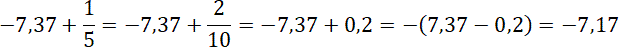 Rozszerz ułamek zwykły do mianownika równego 10 i zapisz go w postaci dziesiętnej (po przecinku znajduje się liczba z licznika). Wykonaj odejmowanie wartości bezwzględnych podanych liczb (od większej odejmij mniejszą wartość bezwzględną) i wstaw taki znak, jaki stał przed liczbą o większej wartości bezwzględnej.