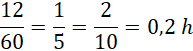 Zamień 12 minut na ułamek stanowiący część godziny. Następnie pomnóż prędkość przez czas w postaci części godziny.