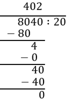 Skorzystaj z własności sprawdzenia dzielenia: wynik ꞏ dzielnik = dzielna. Zatem w miejsce znaku musisz wstawić: 8040 : 402 = 20.