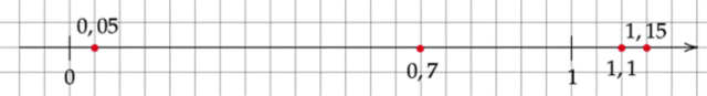 Narysuj oś, dobierz jednostkę: 1 kratka = 0,05. Zacznij od 0 i zaznacz na niej resztę punktów.