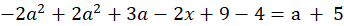 (2a + 3)(3 - a) - 2(a + 1)(2 - a) =