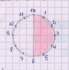 Podziel tarczę na równe części i zamaluj odpowiednią ich ilość. Możesz wykorzystać też informację o minutach i położeniu wskazówki minutowej.