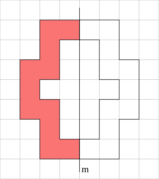 W tym zadaniu dorysuj lustrzane odbicie figury na rysunku względem osi symetrii m.