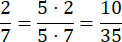 rozszerzyć do mianownika 35, należy licznik i mianownik pomnożyć przez wynik z działania: 35 : 7 = 5, czyli przez 5: