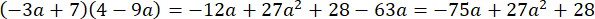 W tym zadaniu przedstaw iloczyn liczb -3a + 7 i 4 - 9a w postaci sumy algebraicznej.