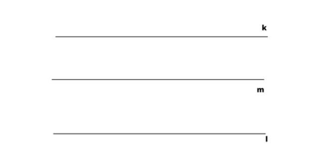 W tym zadaniu poprzez wykonanie rysunku uzasadnij, że jeśli każda z dwóch prostych k i l jest równoległa do trzeciej prostej m, k || l.