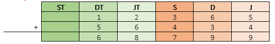 Zapisz w odpowiednim miejscu w tabeli wskazane liczby, a następnie dodaj je do siebie.