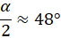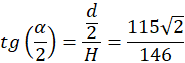 Połowę szukanego kąta oblicz z zależności trygonometrycznych jako tangens kąta, czyli połowa przekątnej podstawy do wysokości ostrosłupa.