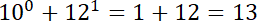 Pamiętaj, dowolna liczba podniesiona do potęgi zerowej wynosi 1, a liczba podniesiona do potęgi 1 się nie zmienia. Wykonaj dodawanie otrzymanych liczb.