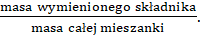 Na początku musisz obliczyć, ile gramów waży cała mieszanka. Następnie zapisać w postaci ułamka zwykłego musisz przedstawić jaką część mieszanki zajmuje wymieniony składnik. Ułamek wygląda następująco: