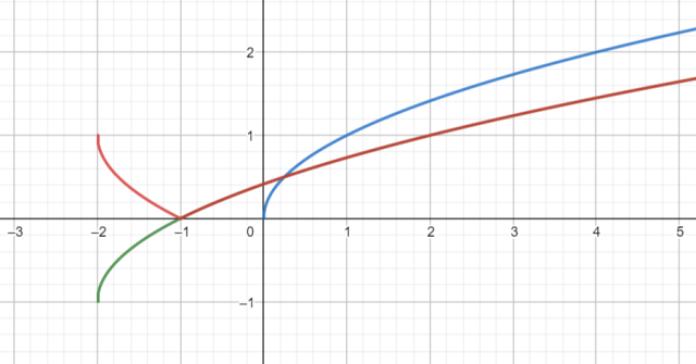Na koniec wykonaj przekształcenie g(x) = |f(x)|. W celu wykonania tego przekształcenia, punkty wykresu znajdujące się nad osią OX pozostaw bez zmian, a te znajdujące się pod osią OX odbij symetrycznie względem niej – kolor czerwony.