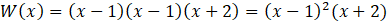 Zauważ, że wielomian W(x) przyjmuje wartość 0 dla x = 1. Oznacza to, że wielomian jest podzielny przez dwumian x – 1. Wykonaj dzielenie za pomocą schematu Hornera, a następnie zapisz wielomian w formie iloczynu. Trójmian x2 + x – 2 rozłóż na czynniki przez obliczenie jego wyróżnika oraz znalezienie pierwiastków.