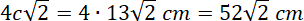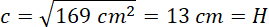 Wysokość prostopadłościanu również wynosi 13 cm, więc przekątna prostopadłościanu tworzy trójkąt prostokątny równoramienny. Jej długość będzie wynosić