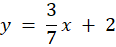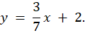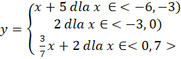 Wzór ogólny funkcji liniowej ma postać: y = ax + b, wiedząc, że funkcja ta przecina oś OY w punkcie (0,2) to współczynnik b = 2. Do wykresu tej funkcji należy punkt A(7, 5), zatem podstawiając go do wzoru, otrzymasz następujący wzór: