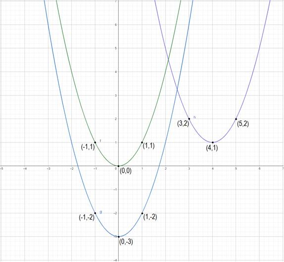 W tym zadaniu musisz narysować trzy wykresy funkcji kwadratowych. Warto zauważyć, że druga i trzecia parabola powstają wskutek przesunięcia o wektor pierwszej paraboli.
