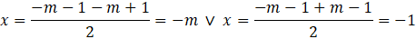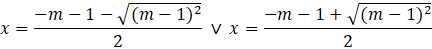 Gdy znamy już deltę pozostaje obliczyć rozwiązania tego równania, w zależności od parametru m, korzystając ze wzorów na miejsca zerowe funkcji kwadratowej: