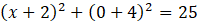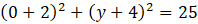 W tym zadaniu trzeba określić współrzędne punktów przecięcia osi układu współrzędnych przez okrąg: (x + 2)2 + (y + 4)2 = 25