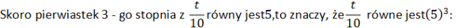 Skoro pierwiastek 3 - go stopnia z + 5 równy jest - 1, to znaczy, że z + 5 równe jest (- 1)3 :