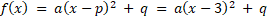 Znając oś symetrii paraboli wyznaczamy pierwszą współrzędną wierzchołka paraboli. Wiedząc, że do wykresu funkcji należą dwa punkty, używamy ich współrzędnych i tworzymy układ dwóch równań z dwiema niewiadomymi a i q, które wyznaczamy. Następnie zapisujemy postać kanoniczną.