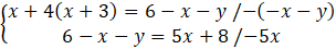 W tym zadaniu musisz zamienić równanie x + 4(x + 3) = 6 – x – y = 5x + 8 na układ równań, a następnie znajdź parę liczb x i y, dla których układ będzie spełniony.