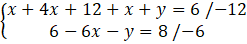6x + y – 6x – y = -6 + 2
