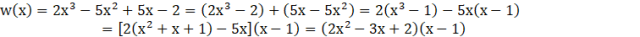 Rozkładamy wielomiany na czynniki korzystając z metody grupowania lub wyliczenia miejsc zerowych funkcji kwadratowej i jej postaci iloczynowej.