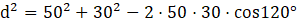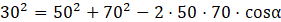Dla dowolnego trójkąta kwadrat jednego z boków jest równy sumie kwadratów dwóch pozostałych odjąć podwojony iloczyn długości tych boków oraz cosinusa kąta między nimi.