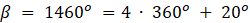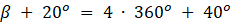 Ramię końcowe kąta β należy obrócić o kąt 20o, wtedy będzie miał on miarę: