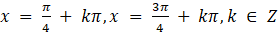 Funkcje tangens i cotangens mają równe wartości dla argumentów postaci: